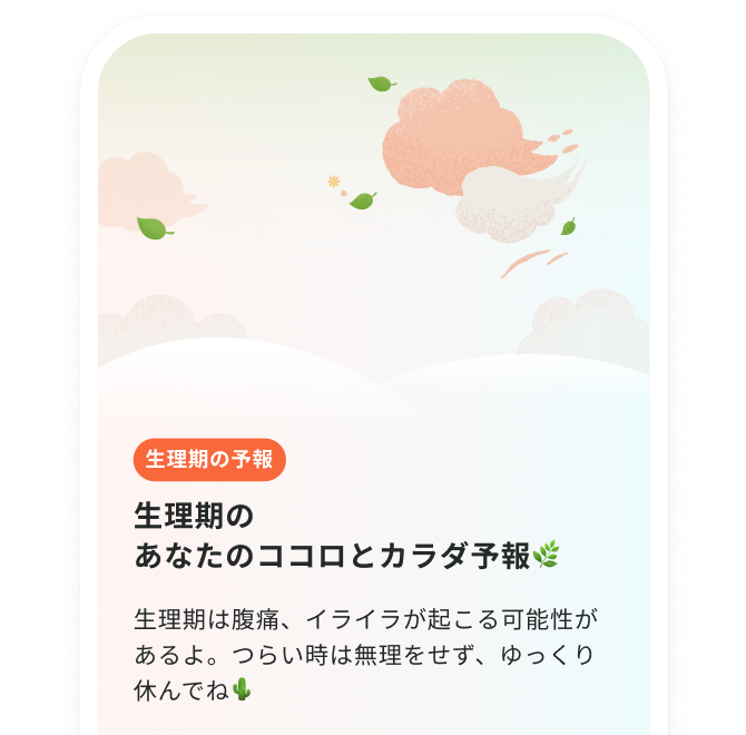 生理日と過去2周期以上の体調記録をもとに、周期ごとにあなたに起こりやすい症状を表示します。