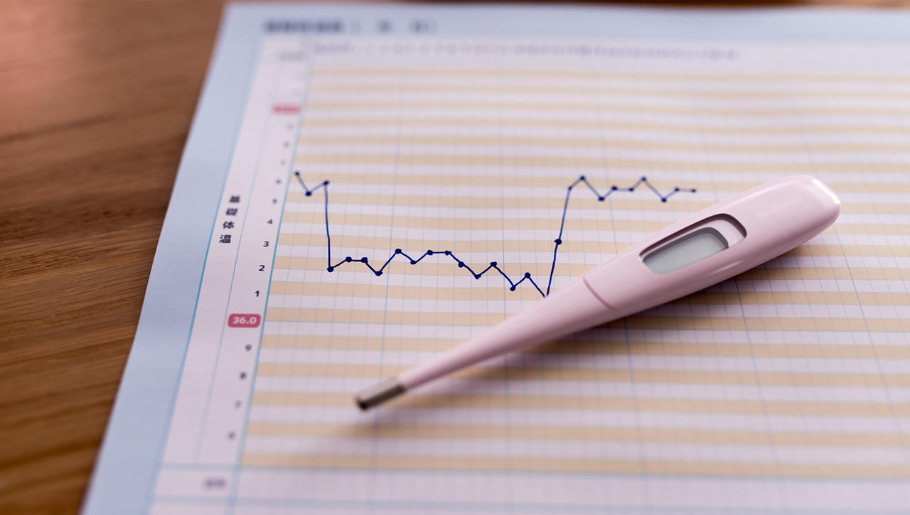 基礎体温とは、生命維持に必要な最小限のエネルギーしか消費していない安静時の体温のこと。体内のホルモン分泌の変化と連動して基礎体温も変わるので、基礎体温を記録してグラフにすることで、排卵日をある程度予測できます。